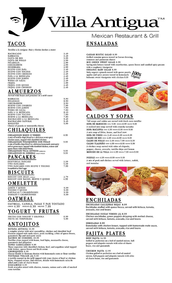At Villa Antigua Grill, you'll find a delightful array of flavors that perfectly capture the essence of Texas cuisine. From sizzling steaks to fresh seafood, the menu is designed to offer something for everyone. Whether you’re in the mood for a hearty grilled dish or something lighter, like a flavorful salad, each option is crafted with care and the finest ingredients. The bold flavors and warm atmosphere make it the perfect spot for a casual meal with friends or a special celebration. With everything from perfectly charred meats to mouthwatering sides, the Villa Antigua Grill Menu ensures that every meal is a memorable one. Whether you’re here for a quick bite or a relaxed dinner, the menu offers a true taste of Texas, and every dish is designed to leave you coming back for more.