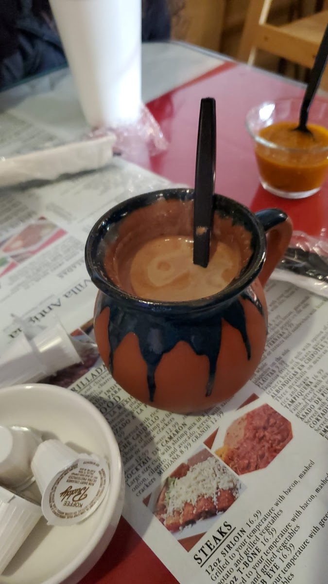 Chicken leg quarter or shredded chicken in our homemade mole sauce topped with sesame seeds, served with rice, and beans